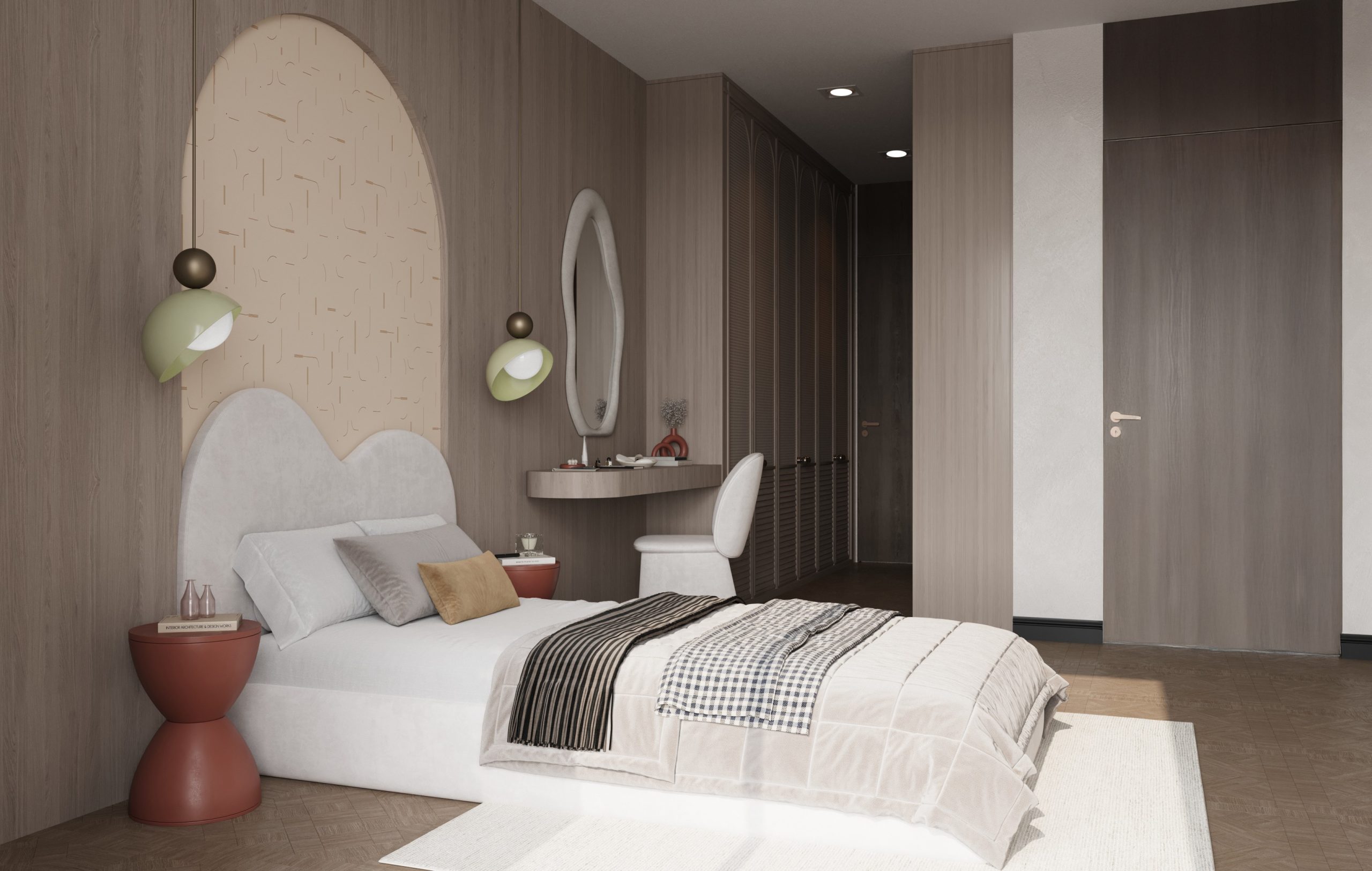 Her oda, doğal dokular ve dengeli ışıkla şekillenen sakin bir atmosfer sunar. 100 m²’den oluşan bu kat, evin ritminin yavaşladığı, mahremiyetin ön plana çıktığı bir yaşam düzeyi olarak kurgulanmıştır.